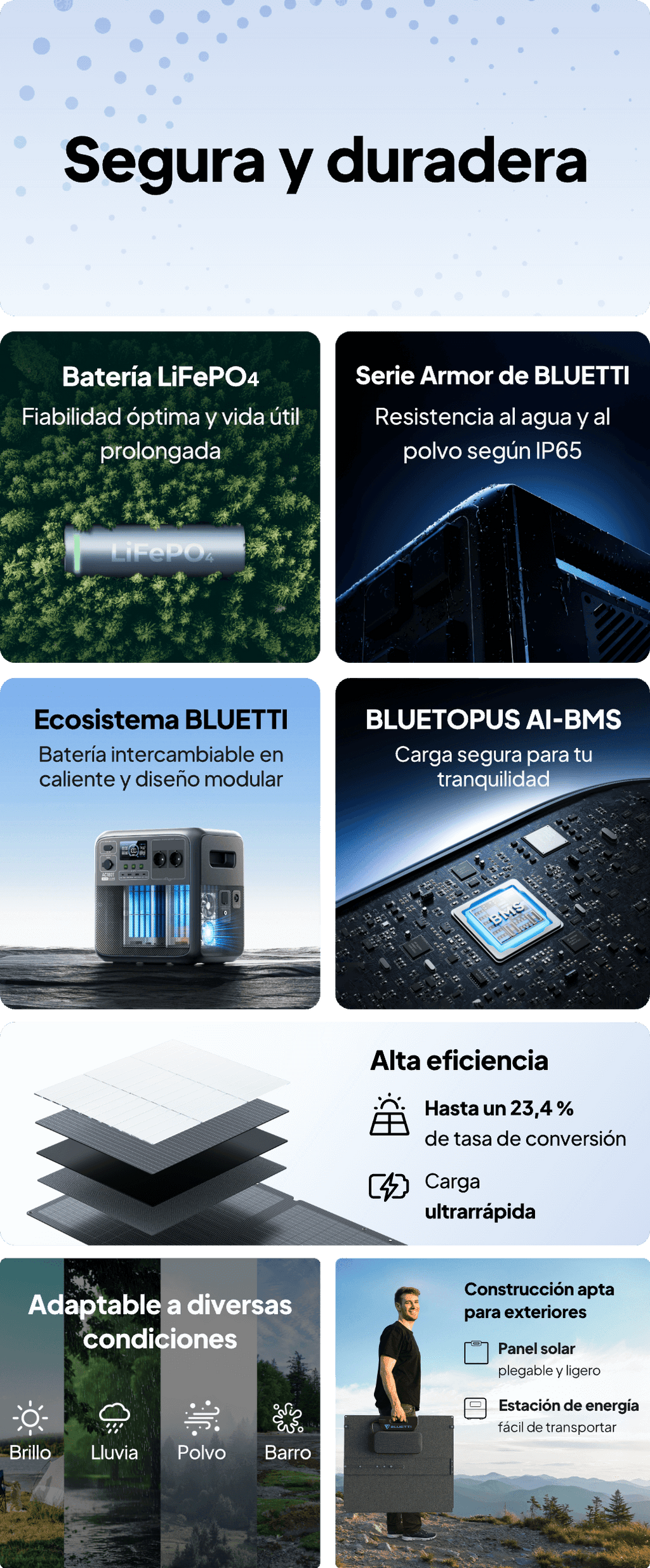 Deshazte de los generadores de combustibles fósiles que producen emisiones tóxicas y ruidos molestos. Descubre cómo los generadores solares BLUETTI transforman tu forma de disfrutar de la naturaleza y más allá. Carga tus aparatos electrónicos, mantén tu refrigerador en funcionamiento o ilumina tu camping: todo con la energía del sol.