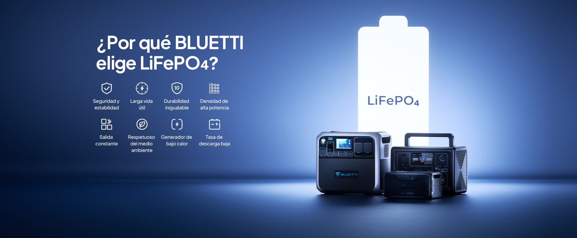 Las baterías LiFePO₄ pueden alcanzar hasta el 100 % de profundidad de descarga y retener hasta el 80 % de su capacidad original incluso después de miles de ciclos de carga. Las estaciones de energía de gama media a alta de BLUETTI incluso permiten más de 3.500 ciclos de carga y descarga.