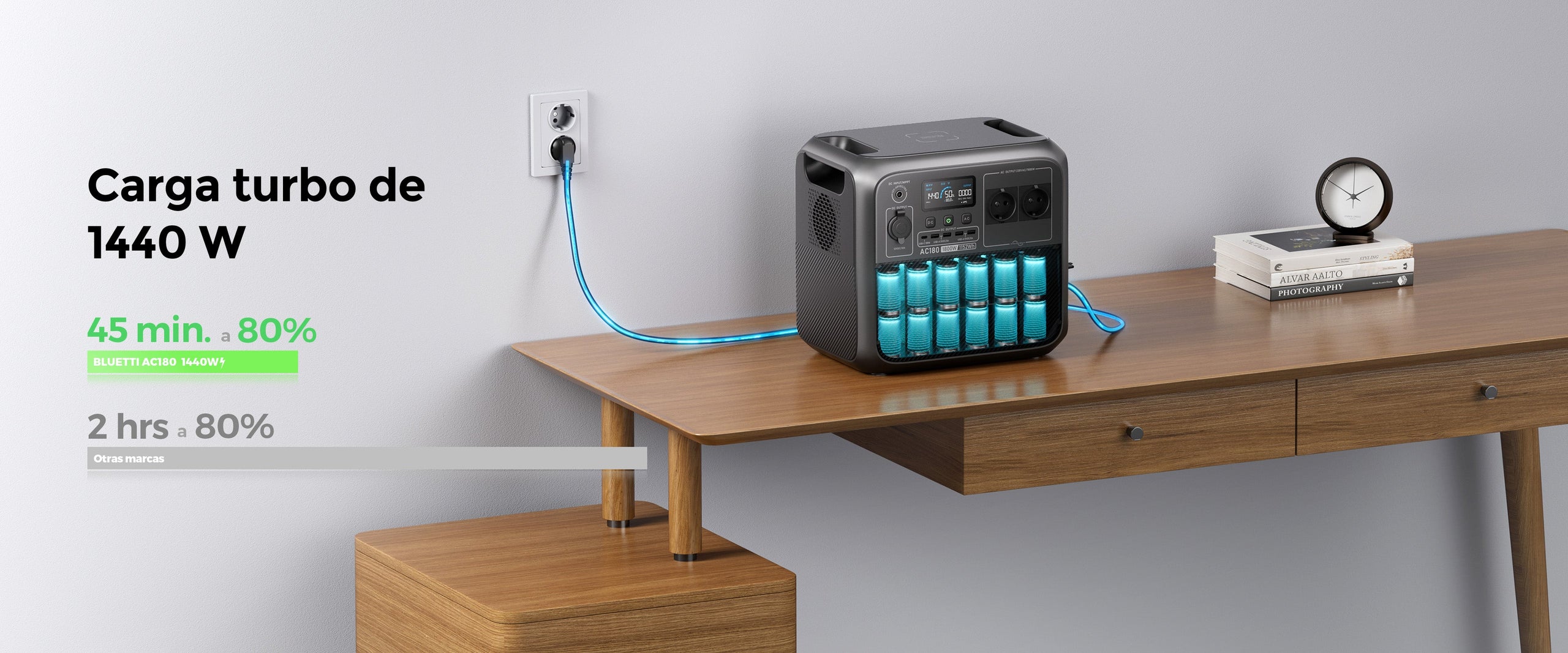 • Recarga del 0 al 80 % en 45 minutos con entrada de CA de 1440 W