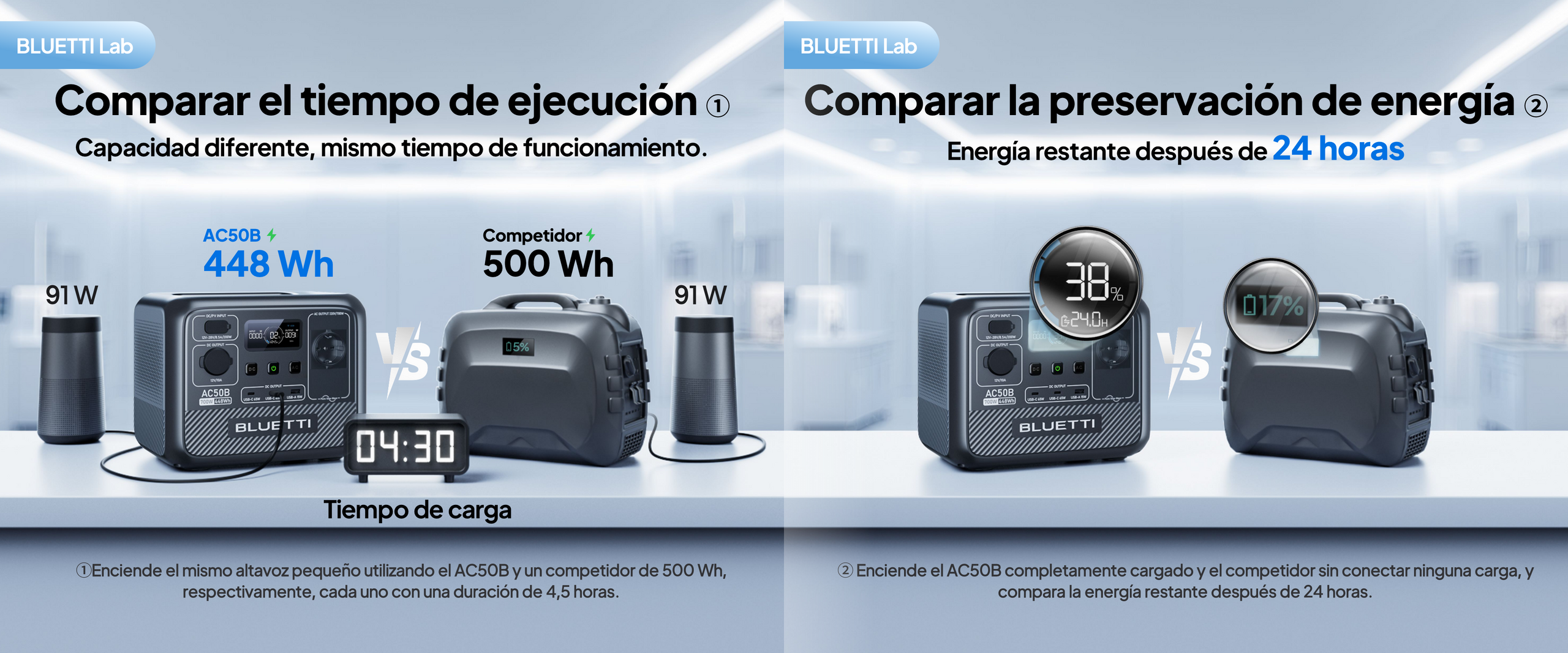 1. Mayor potencia de salida: El AC50B ofrece una robusta salida de 700 W, en comparación con los 500 W típicos de muchos competidores.