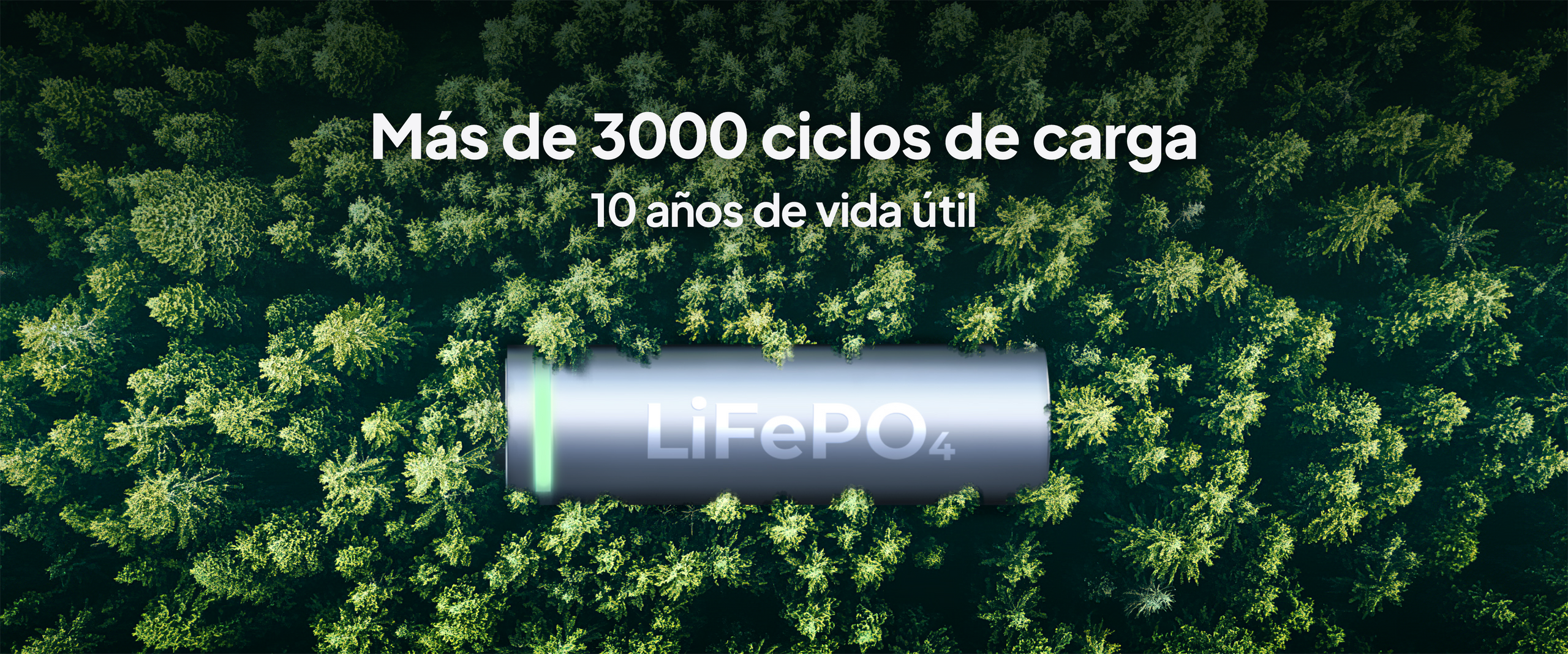 • * Batería LiFePO₄ para 3.000+ ciclos de carga