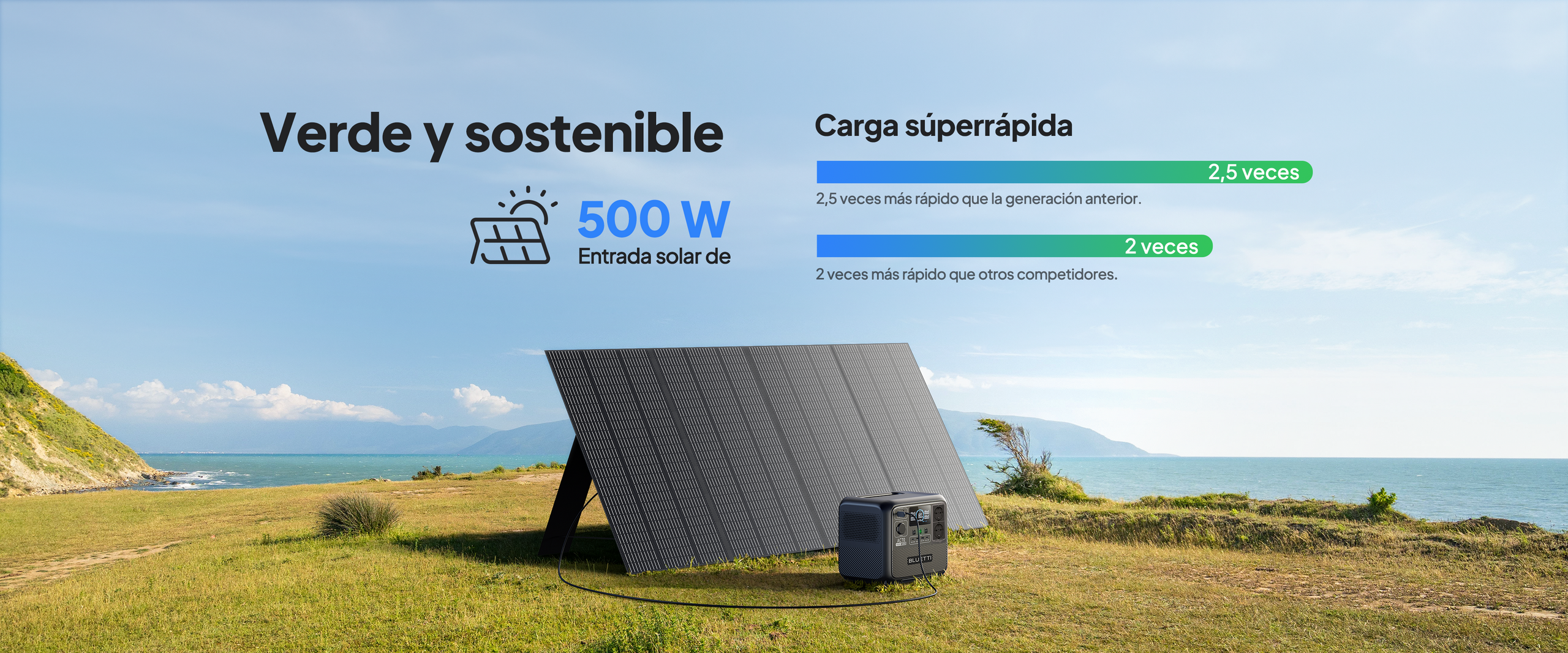 • * Entrada solar rápida de 500 W, carga completa en 2 horas