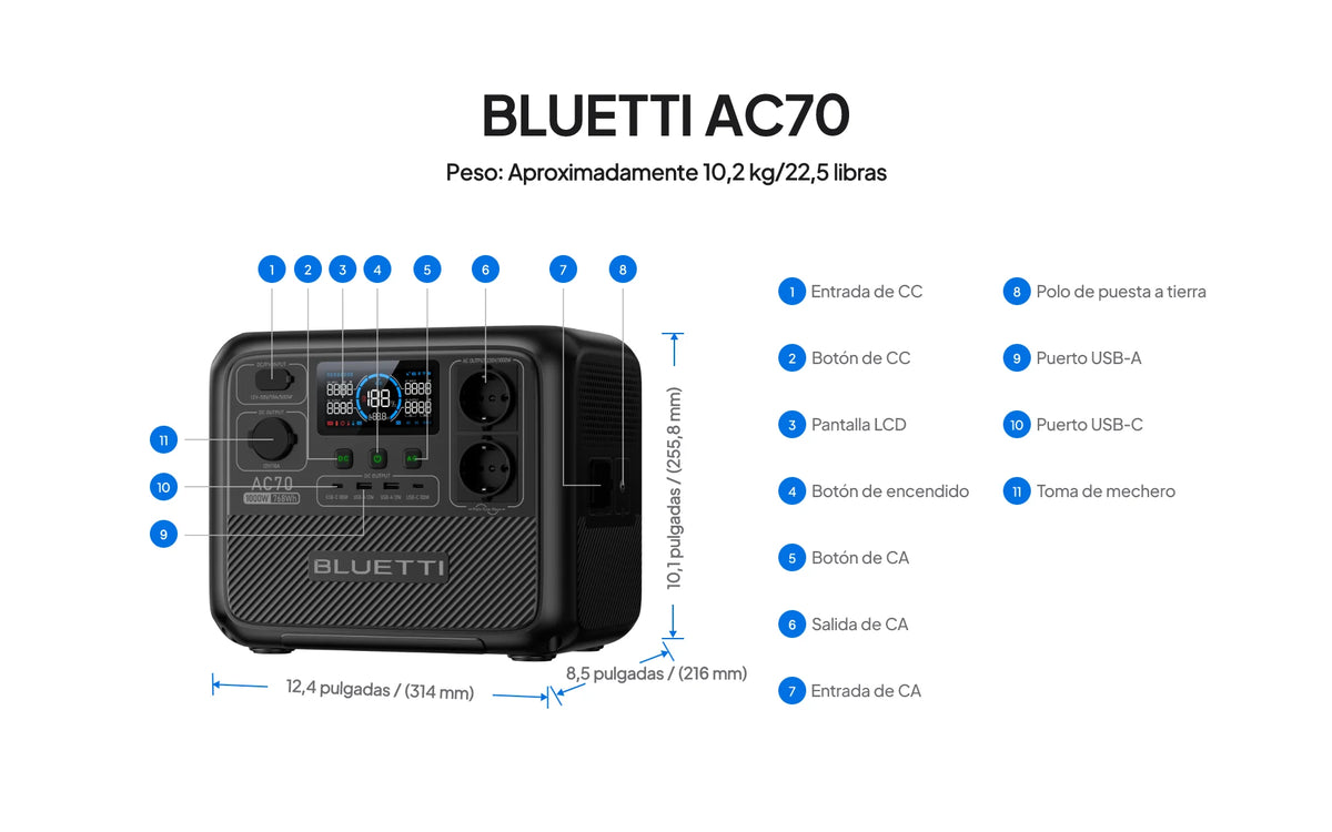 * La AC70 tiene una potencia de salida nominal de 1.000 W y una potencia adicional de 2.000 W.