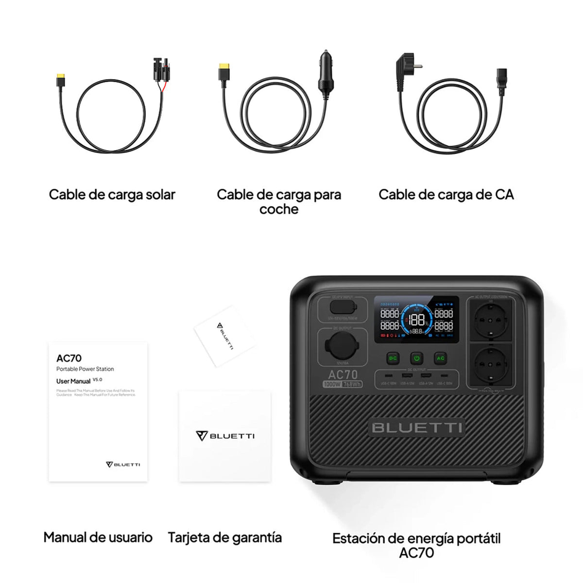 BLUETTI AC70 Estación de energía portátil | 1.000 W 768 Wh