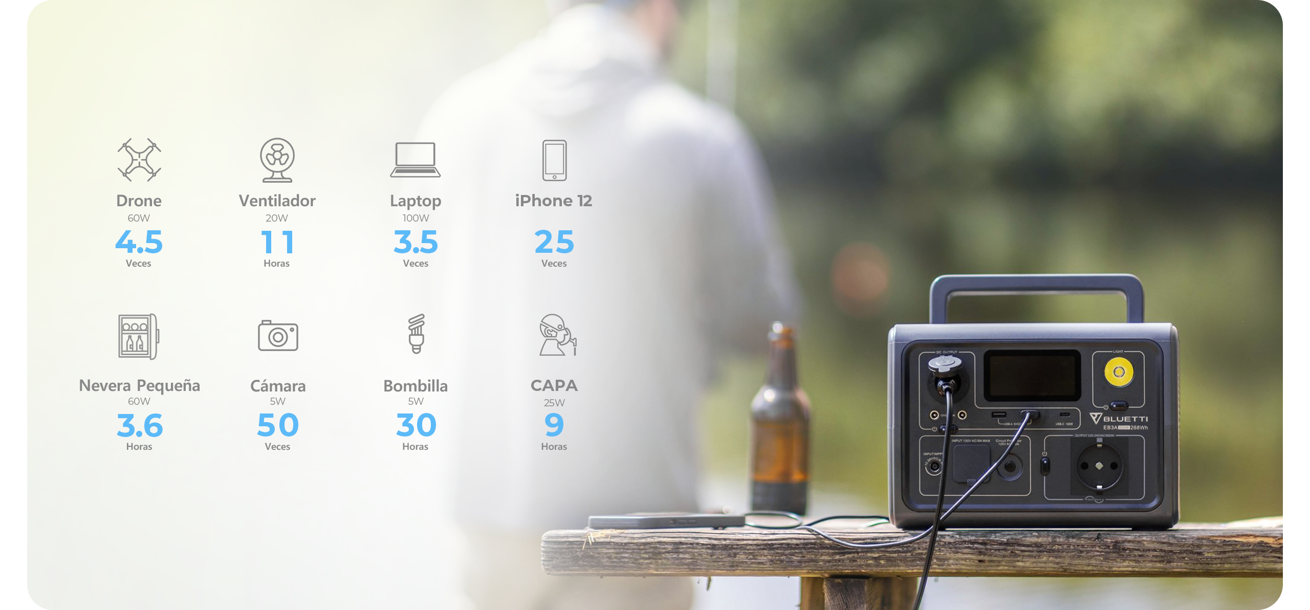 1x BLUETTI PV200: ≈1,8 horas*.