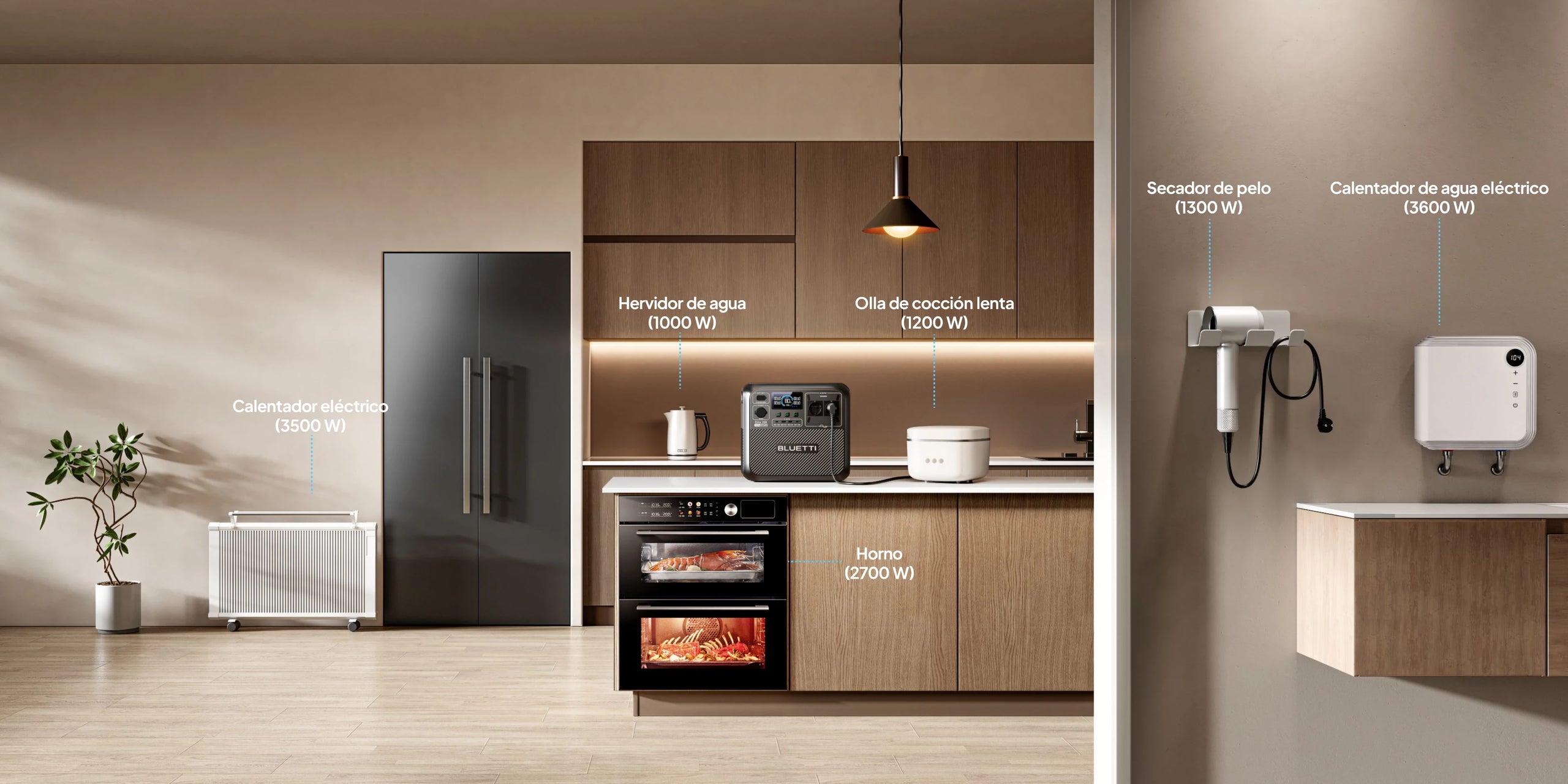 y lo bastante potente para cubrir lo esencial, desde cafeteras hasta cocinas de inducción.