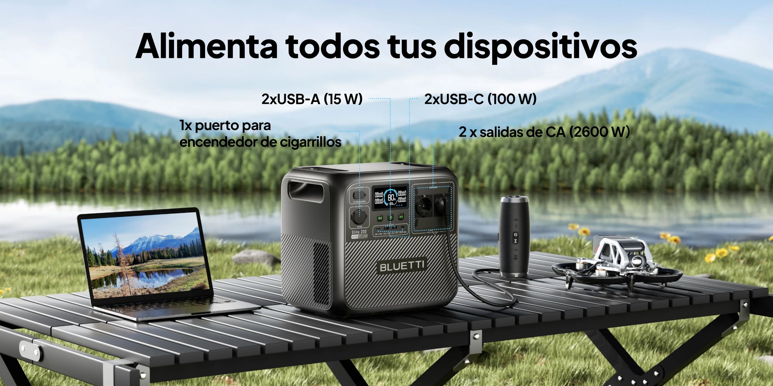A través de nuestra investigación de mercado y los comentarios de los clientes, descubrimos que una potencia nominal de 2600 W satisface de manera eficaz las diversas necesidades energéticas de varios escenarios, incluidos campamentos, viajes, vehículos recreativos, vida fuera de la red y respaldo doméstico. El Elite 200 V2 puede manejar fácilmente dispositivos de mayor potencia, como bombas, aires acondicionados y hornos. En comparación con la potencia de salida promedio de alrededor de 2000 W, presenta una salida adicional de 600 W para hacer funcionar más electrodomésticos, como PC para juegos y tostadoras.